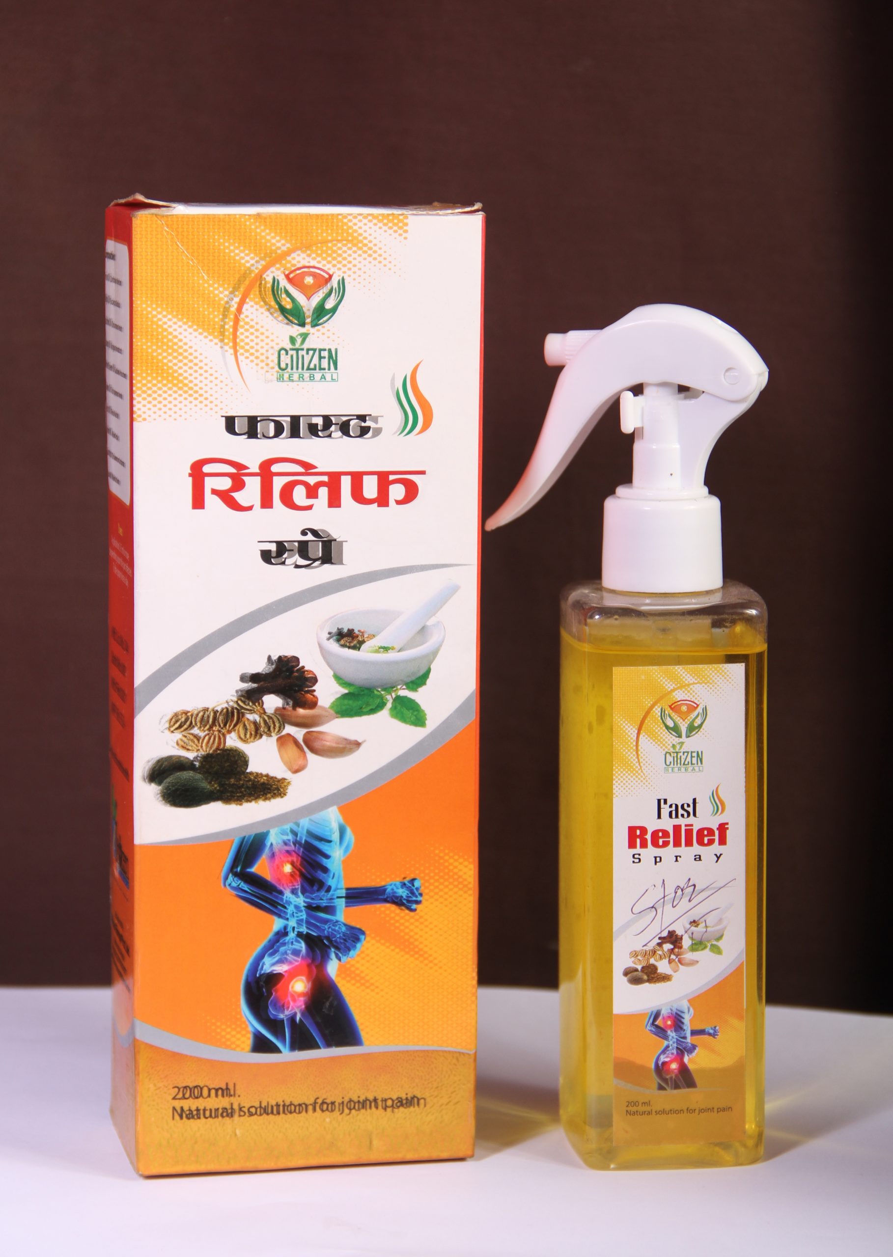 फास्ट रिलिफ स्प्रे टिमुर तेल, निलगिरी तेल, दालचिनी तेल, अज्वइन तेल, कपूर, लसुण तेल,ल्वाङ्ग तेल अन्य महत्पूर्ण जडिबुटीहरुको समिश्रणबाट बनेको मानव शरीरका लागि अत्याधिक लाभदायक तथा तुरुन्त आराम दिने स्प्रे हो । यसको प्रयोग शरीरको सम्बेदनशील अंगहरु बाहेक हाड जोर्नीको दुखाईबाट तुरुन्त मुतिm, मांसपेशी, ढाड दुखेको, मर्केको,सड्को, घाँटी गर्दन, टाउको दुखेको, बाथजन्य समस्यामा तुरुन्त आराम दिलाउँछ ।